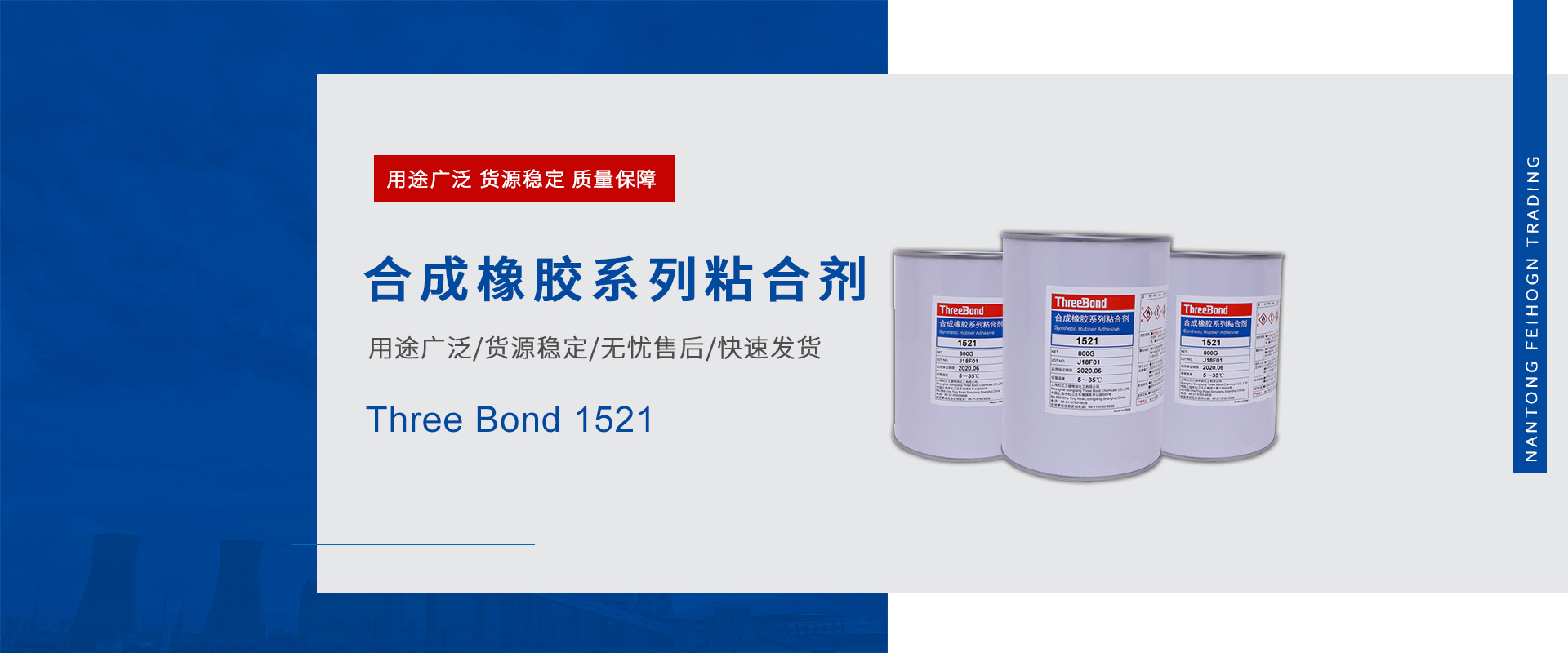 南通飛鴻商貿(mào)專營(yíng)各大品牌膠粘劑,密封劑。主營(yíng)樂泰、波士、天山、三鍵、富樂以及3M等知名品牌,為客戶提供多樣的服務(wù)、專業(yè)的技術(shù)支持和系統(tǒng)解決方案在江蘇地區(qū)經(jīng)營(yíng)各類工業(yè)產(chǎn)品,其經(jīng)營(yíng)范圍包括:螺紋鎖固密封膠系列,結(jié)構(gòu)粘接及平面密封膠系列,圓柱固持系列,金屬修補(bǔ)系列,耐磨耐腐蝕系列,表面清洗及銹蝕處理系列,地面防滑及修補(bǔ)系列,橡膠粘接及皮帶修補(bǔ)系列,減摩涂層及定位灌封系列,緊急修補(bǔ)系列,高溫密封修補(bǔ)系列,抗咬合潤(rùn)滑劑系列,羅哥潤(rùn)滑油系列等等,主要服務(wù)于汽車,工程機(jī)械,軌道交通,新能源,電子電器,船舶,冶金,航空航天,電力,醫(yī)療等諸多行業(yè)!